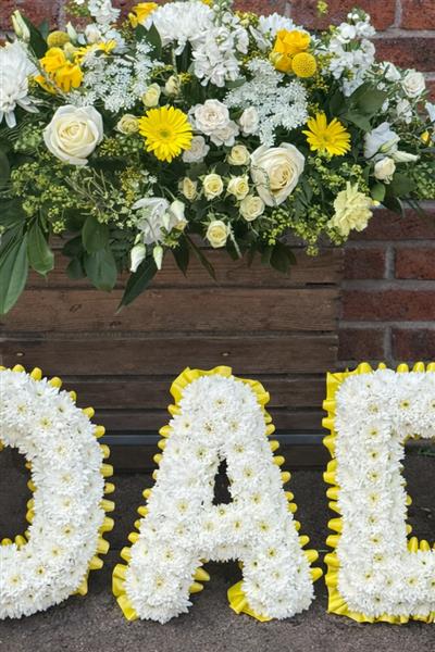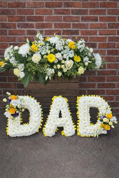 The lemon and white Dad collection includes 4ft casket spray and Dad Letter tribute.